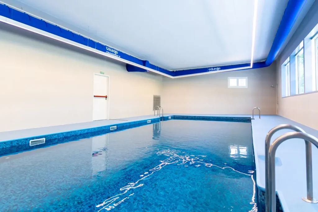 Contamos con una piscina climatizada para nuestros alumnos. Somos conscientes que la piscina contribuye al desarrollo psicomotor y es una parte esencial en la actividad deportiva de nuestros alumnos.